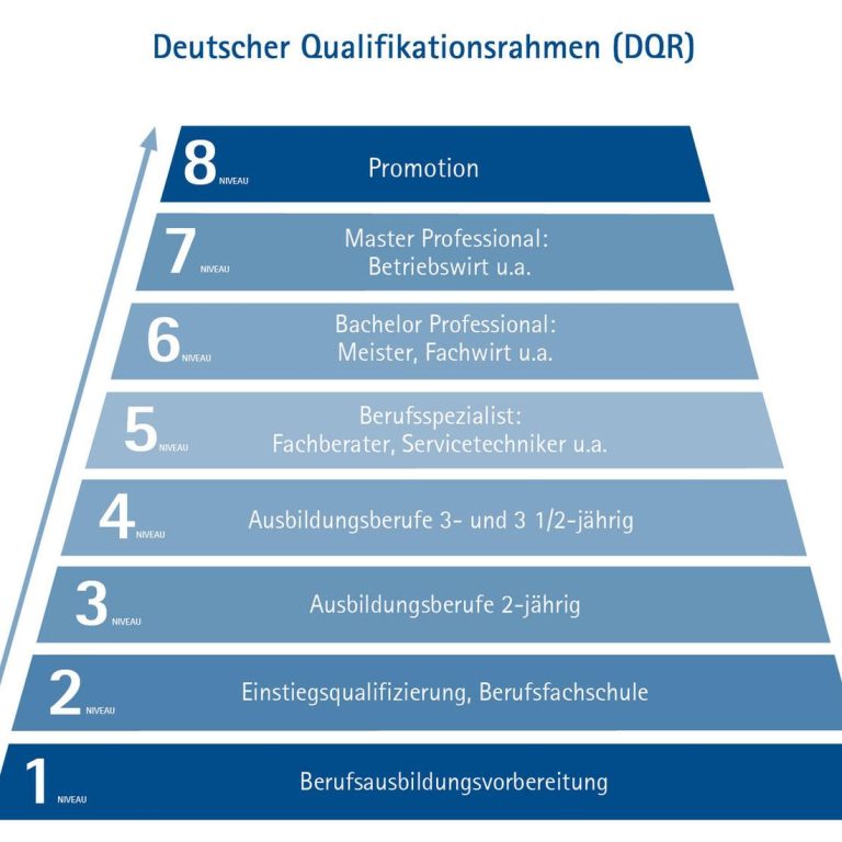 Die EU-Staaten haben unterschiedliche Bildungssysteme mit einer Fülle verschiedener Abschlüsse. Der Europäische Qualifikationsrahmen (EQR) schafft Transparenz über Landesgrenzen hinweg und fördert damit die europaweite Mobilität von Arbeitnehmerinnen und Arbeitnehmern. Die DQR-Stufe der deutschen Qualifikation entspricht der EQR-Stufe.